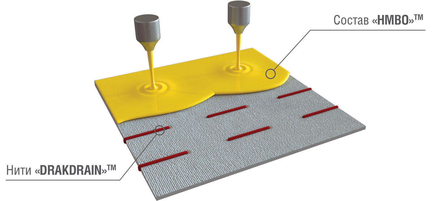В данной продукции применяется специальный состав «НМВО»ТМ, наносимый на Поверхность ткани во время ее изготовления с высокими адгезионными свойствами к нефтепродуктам и их производным.