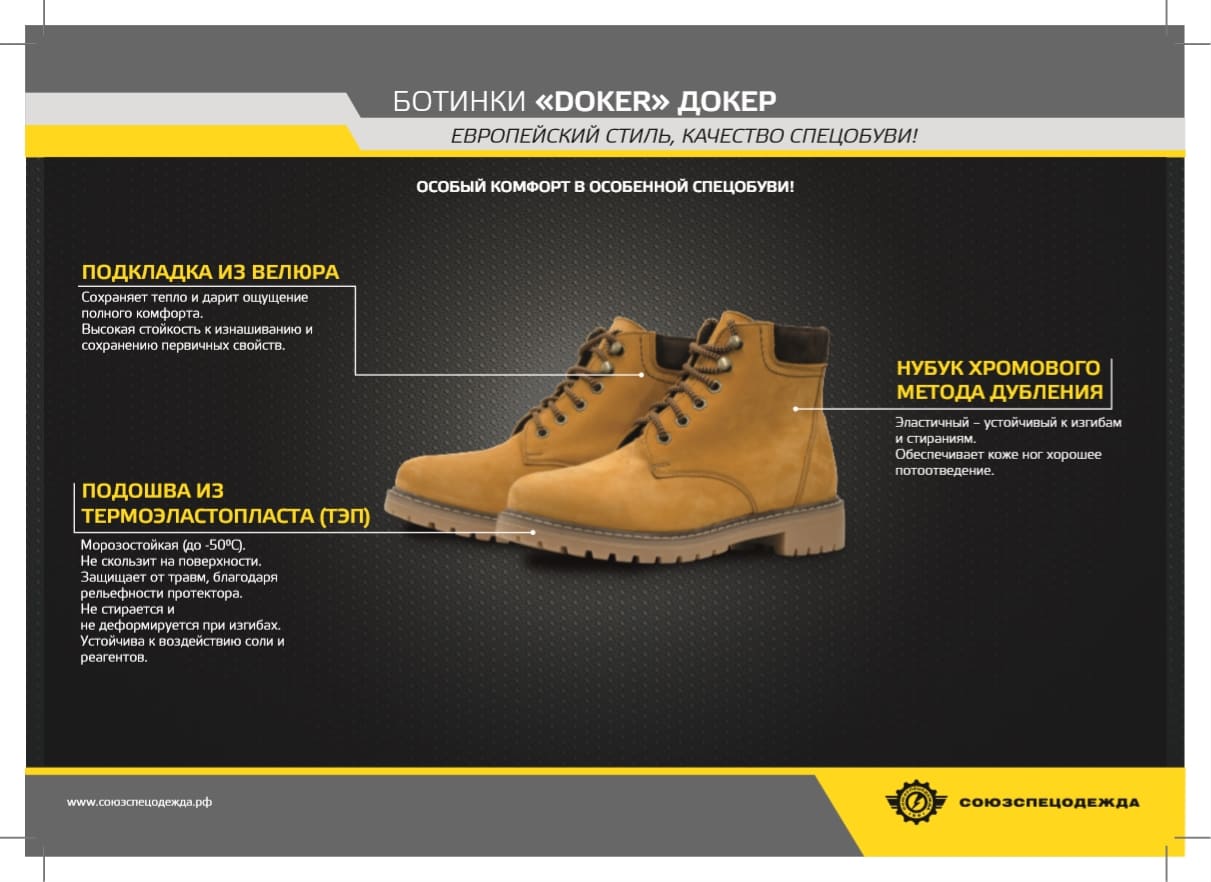 Представляем вам новинку - ботинки «Докер» из нубука с уникальной сверхпрочной подошвой из термоэластопласта. Мы разработали ботинки для людей, выбирающих не только комфорт, но и стиль. В результате, получена обувь, не имеющая аналогов!