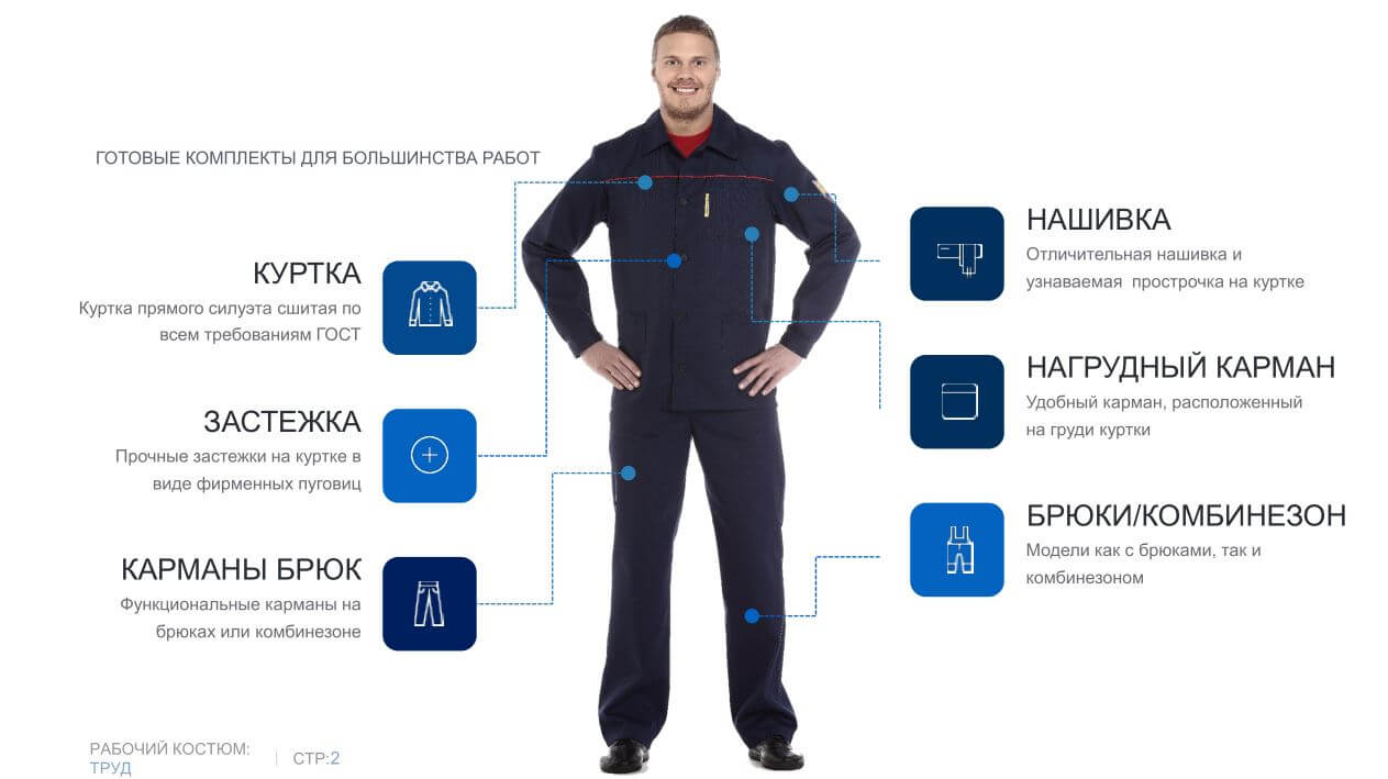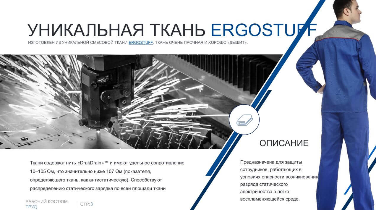 Универсальный рабочий костюм из прочной комфортной дышащей смесовой ткани ERGOstuff.