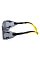 Панорамная монолинза с трёхуровневой защитой: фронтальной, верхней и боковой. Регулируемые по длине и углу наклона двухцветные удобные дужки с мягкими заушниками соединены с монолинзой встроенными винтами и обеспечивают универсальную настройку для любого типа головы и лица.