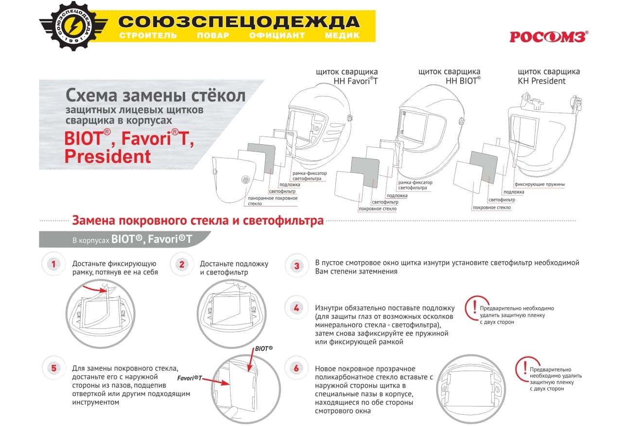 Применяется совместно с защитными касками, щитками сварщика, термостойкими лицевыми щитками.