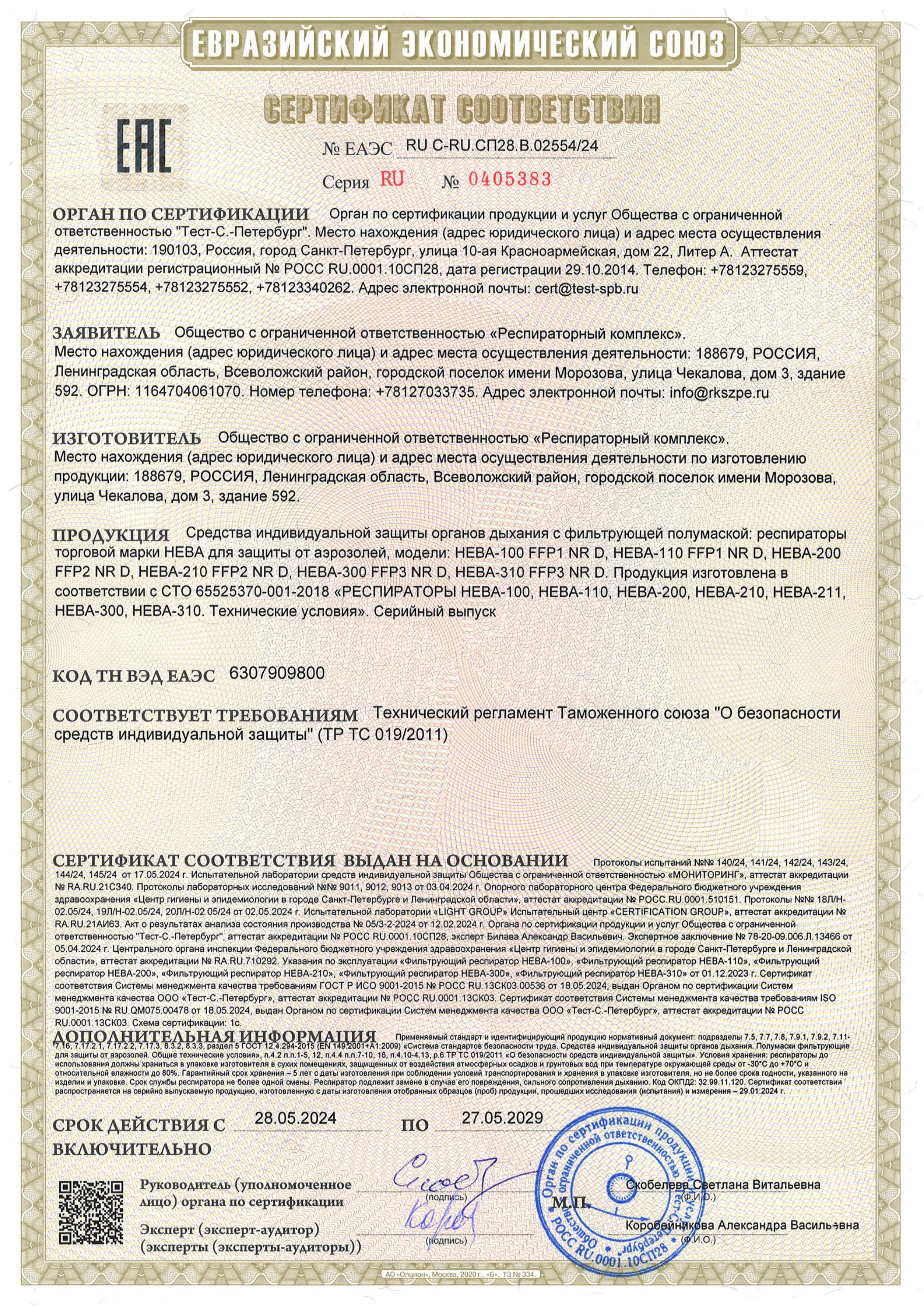Респиратор Нева 210 создан для защиты пользователя от вредного воздействия аэрозолей (содержание не более 12 ПДК).